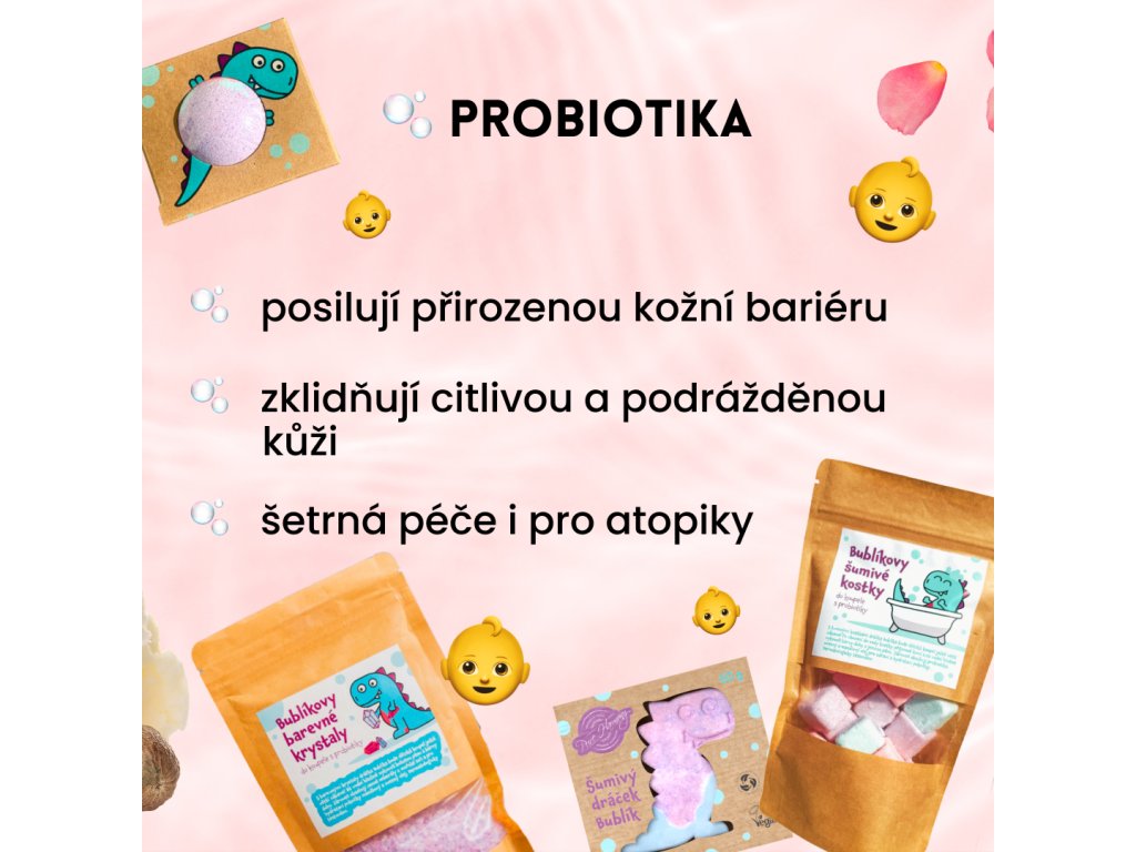 S barevnými krystaly dráčka Bublíka bude dětská koupel ještě větší zábava! Zároveň krystaly obsahují cenné minerály z mořské soli a pro hydrataci pokožky mandlový a ovesný olej. Také obsahují probiotka pro podporu přirozeného chování kožního mikrobiomu.