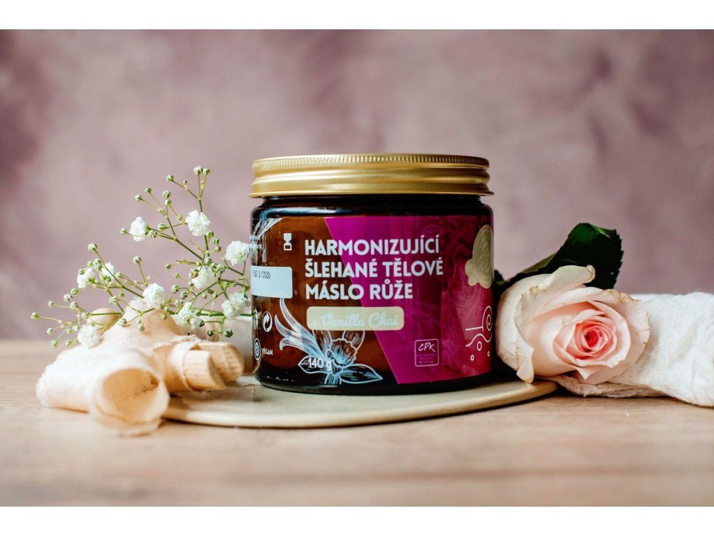 Harmonizující šlehané tělové máslo Růže s Vanilla Chai 140 g
