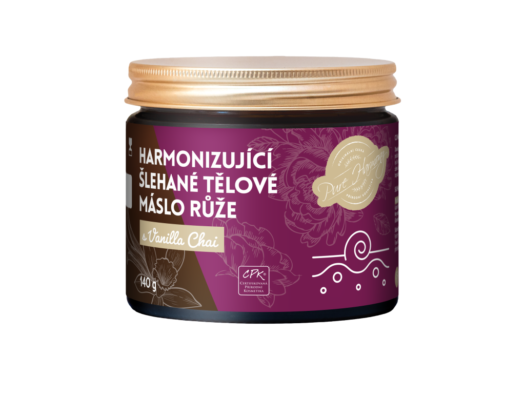 Dopřejte své pokožce i mysli chvíli hlubokého uvolnění. Harmonizující šlehané tělové máslo Růže s Vanilla Chai má nadýchanou, jemnou texturu, která se snadno vstřebává a zanechává pokožku sametově hebkou, vyživenou a hydratovanou.