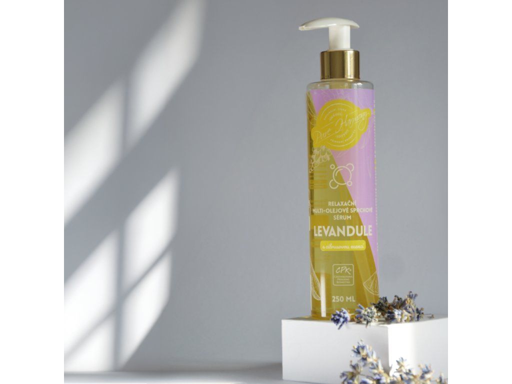 Proměňte každodenní sprchu v pečující rituál. Hydratační multi-olejové sprchové sérum Levandule s citrusovou esencí je jemnou alternativou k běžným sprchovým gelům – pokožku šetrně myje, čistí a zároveň intenzivně vyživuje.