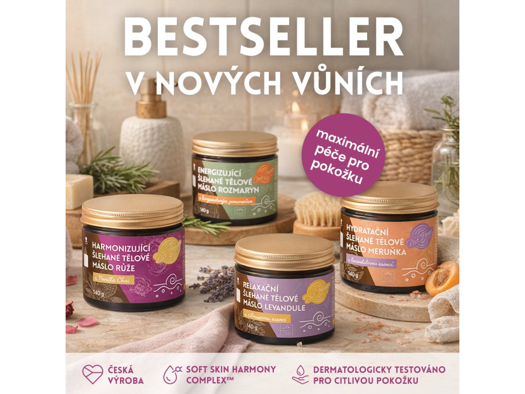 Dopřejte své pokožce i mysli chvíli hlubokého uvolnění. Relaxační šlehané tělové máslo Levandule s citrusovou esencí má nadýchanou, jemnou texturu, která se snadno vstřebává a zanechává pokožku sametově hebkou, vyživenou a hydratovanou.