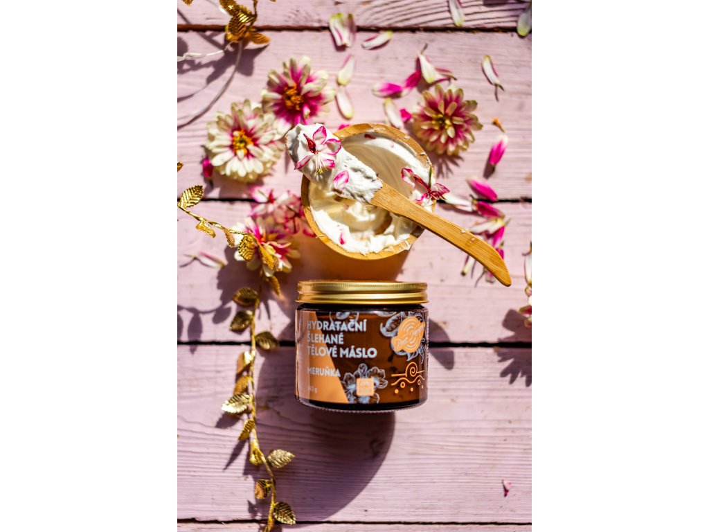 Hydratační šlehané tělové máslo rozmazlí vaši pokožku intenzivní hydratací a výživou díky rostlinným olejům. Jeho lehká, nadýchaná textura se dobře roztírá a zanechává pokožku hebkou, vláčnou a krásně provoněnou meruňkou s levandulí.