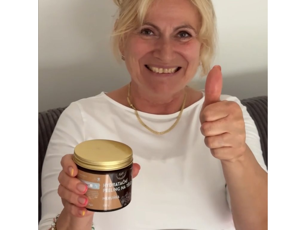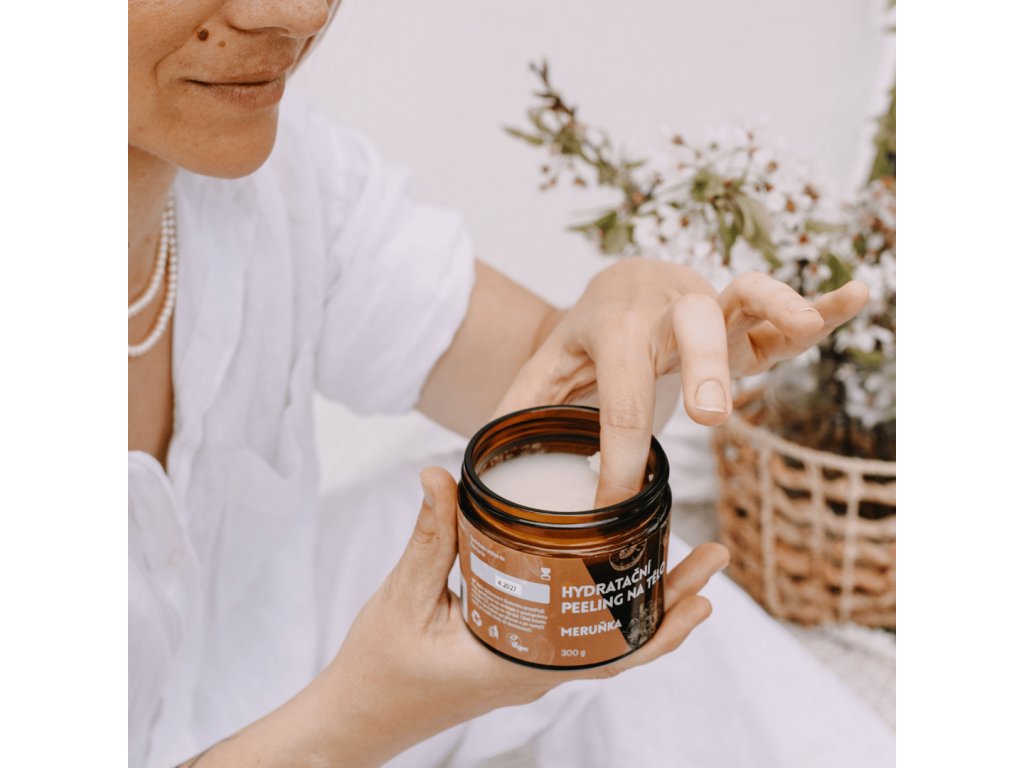 Náš bestseller Hydratační peeling na tělo Meruňka obsahuje vysoké množství rostlinných olejů a jemnou mořskou sůl, která účinně odstraňuje odumřelé kožní buňky, zatímco je pokožka hydratovaná díky obsahu bambuckého másla a světlicového, mandlového či meruňkového oleje. 100 % přírodní složení.