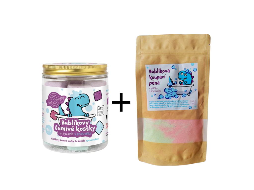 Výhodné duo Probiotická koupel - Bublíkovy šumivé kostky a Bublíkova pěna v prášku