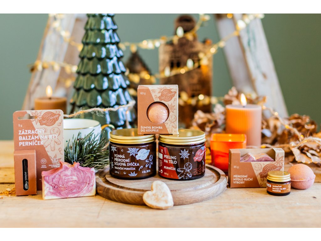 Zázračný balzám na rty Perníček spojuje účinnou péči s jedinečným smyslovým zážitkem. Obsahuje 98 % složek přírodního původu – bambucké máslo, včelí vosk a rostlinné oleje, které rty vyživují, hydratují a chrání před popraskáním. Jeho sladce kořeněná vůně perníčku připomíná pohodu Vánoc a potěší malé i velké.